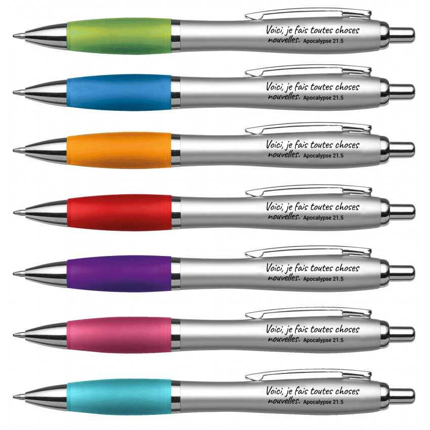 Stylo à bille élégant et coloré, avec le verset inspirant d’Apocalypse 21.5 : Voici, je fais toutes choses nouvelles.