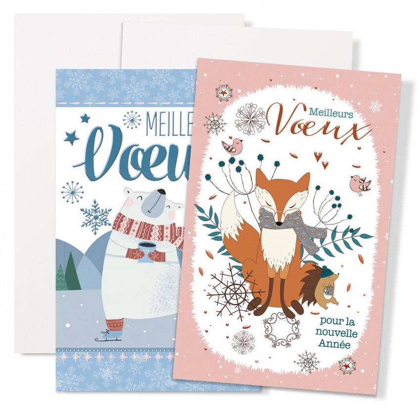 Carte double Meilleurs Voeux biche et cadeaux