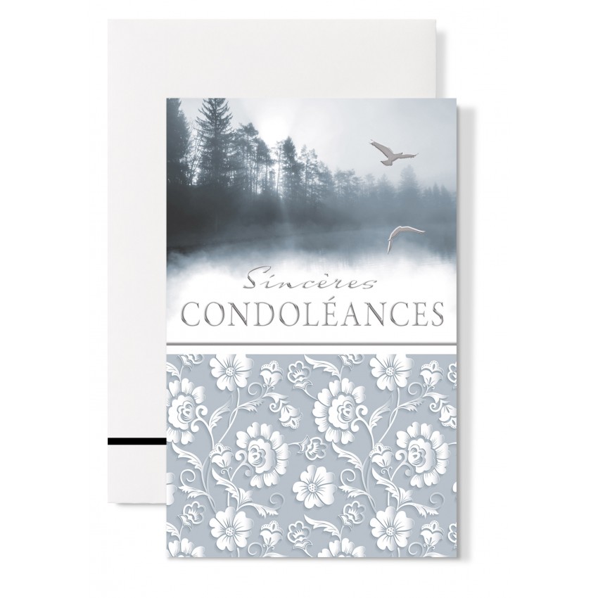 Jolie carte de condoléances simple petit format avec mignonette SC : "Oiseaux survolant un...