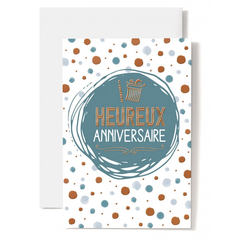 Jolie carte double grand format "Heureux Anniversaire" avec rond vert dessiné sur fond de...