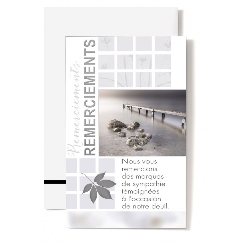 Jolie carte de condoléances double petit format avec mignonette REM. : Ponton sur la mer,...