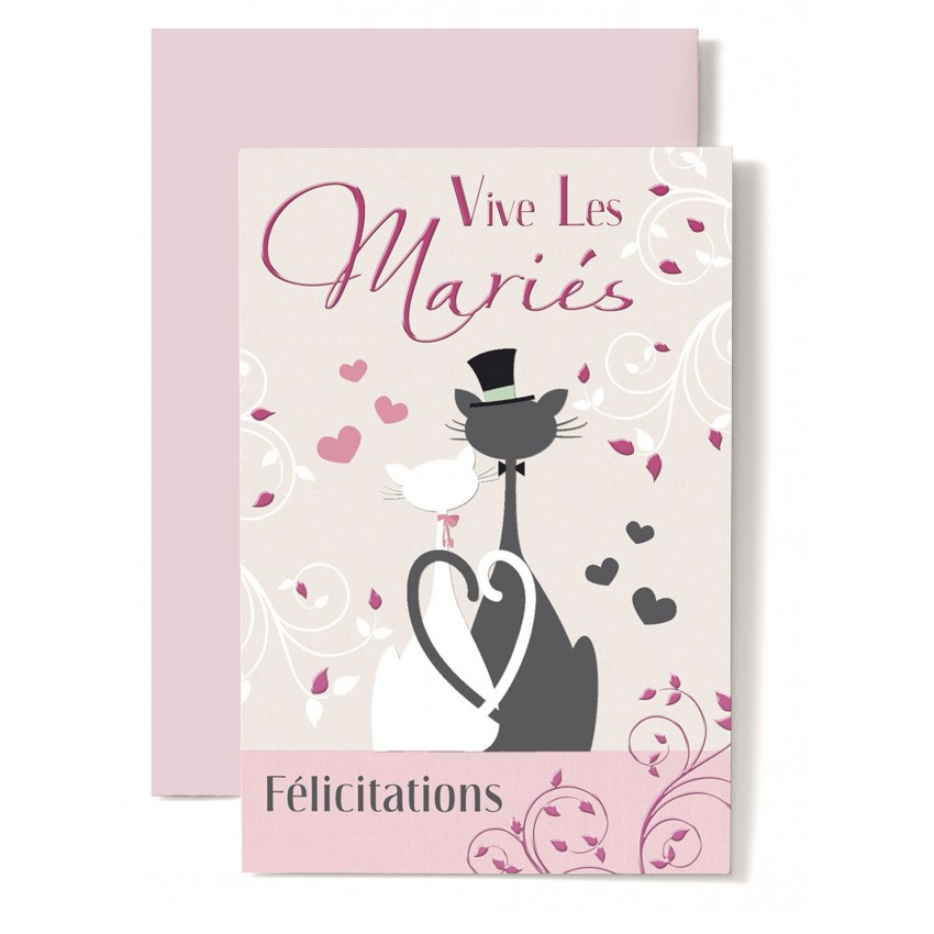Jolie carte double de félicitation pour le mariage avec un couple de chats