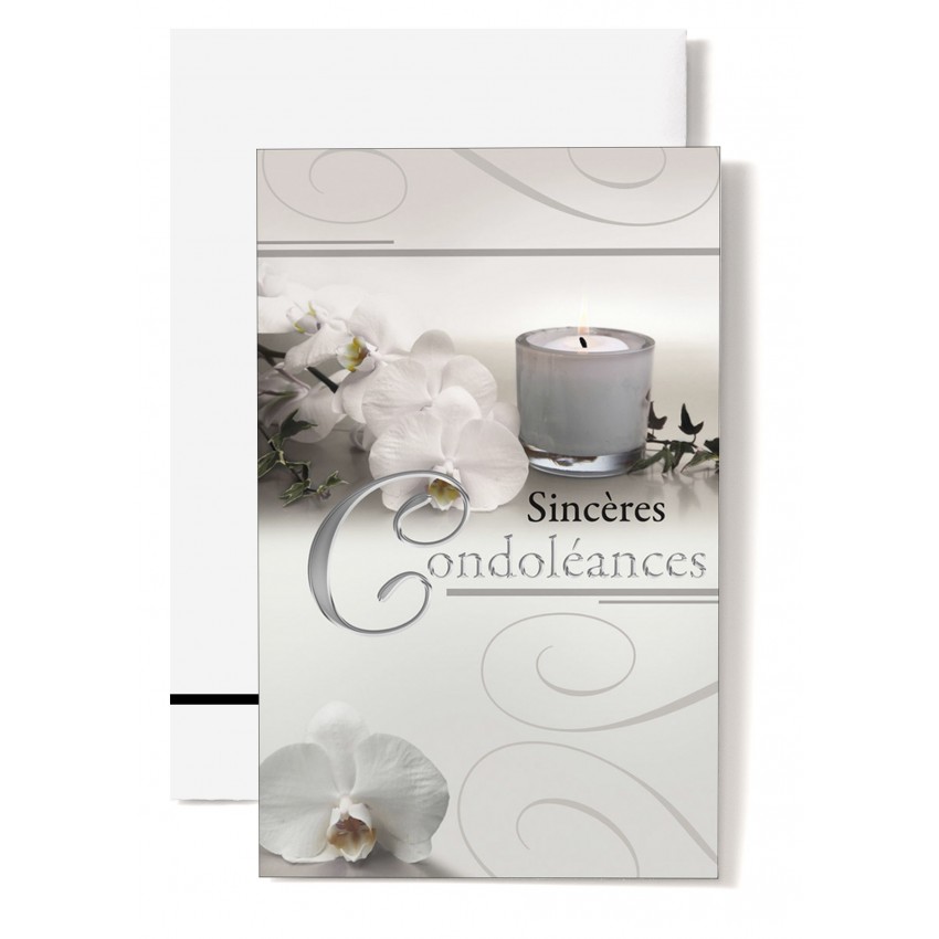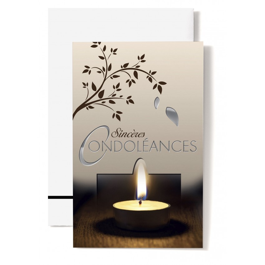 Jolie carte postale double de condoléance avec une bougie noire, brune et beige posée sur des...