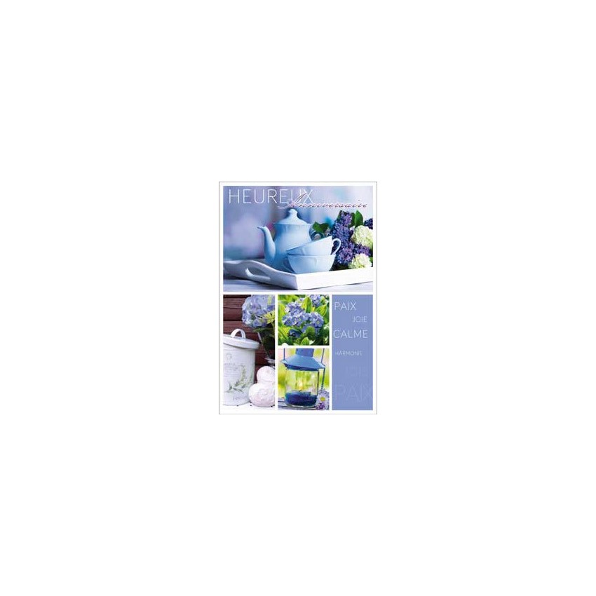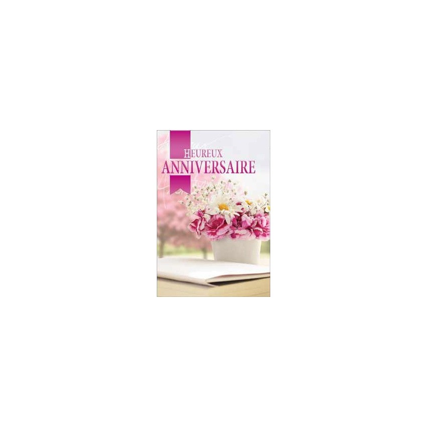 Jolie carte double grand format "Heureux Anniversaire" avec un livre ouvert. La carte est...