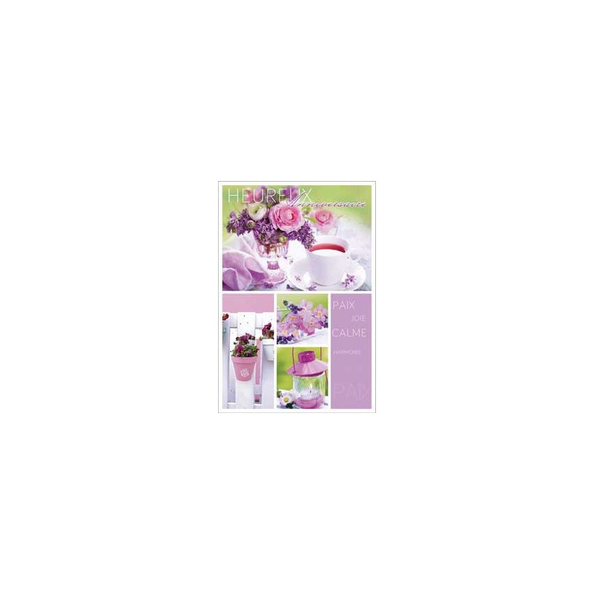 Jolie carte double grand format "Heureux Anniversaire" avec un pot de fleurs. La carte est...