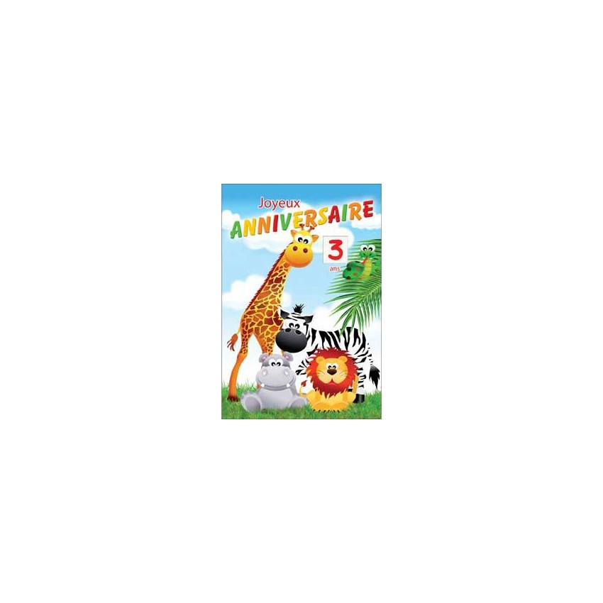 Jolie carte double grand format "Heureux Anniversaire" avec une girafe, un zèbre, un...