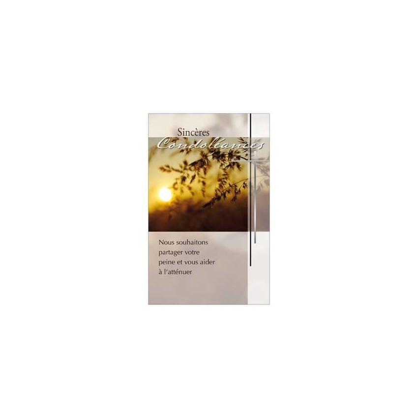 Jolie carte de condoléances double petit format avec des herbes au couchant. La carte est...