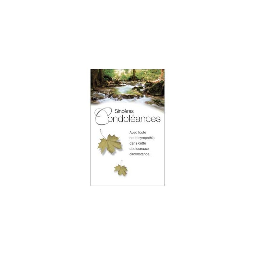 Jolie carte de condoléances double petit format avec un torrent dans un sous-bois. La carte...