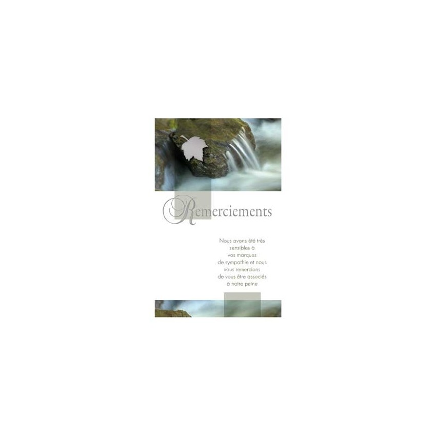 Jolie carte de condoléances simple petit format avec un torrent sur un rocher. La carte est...